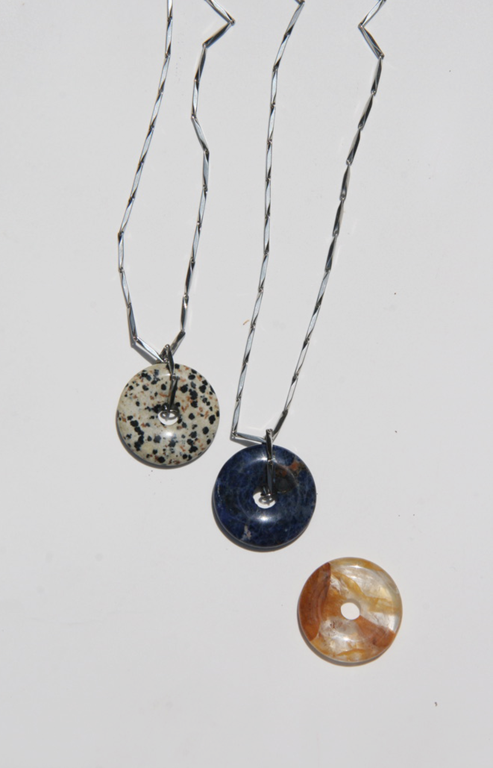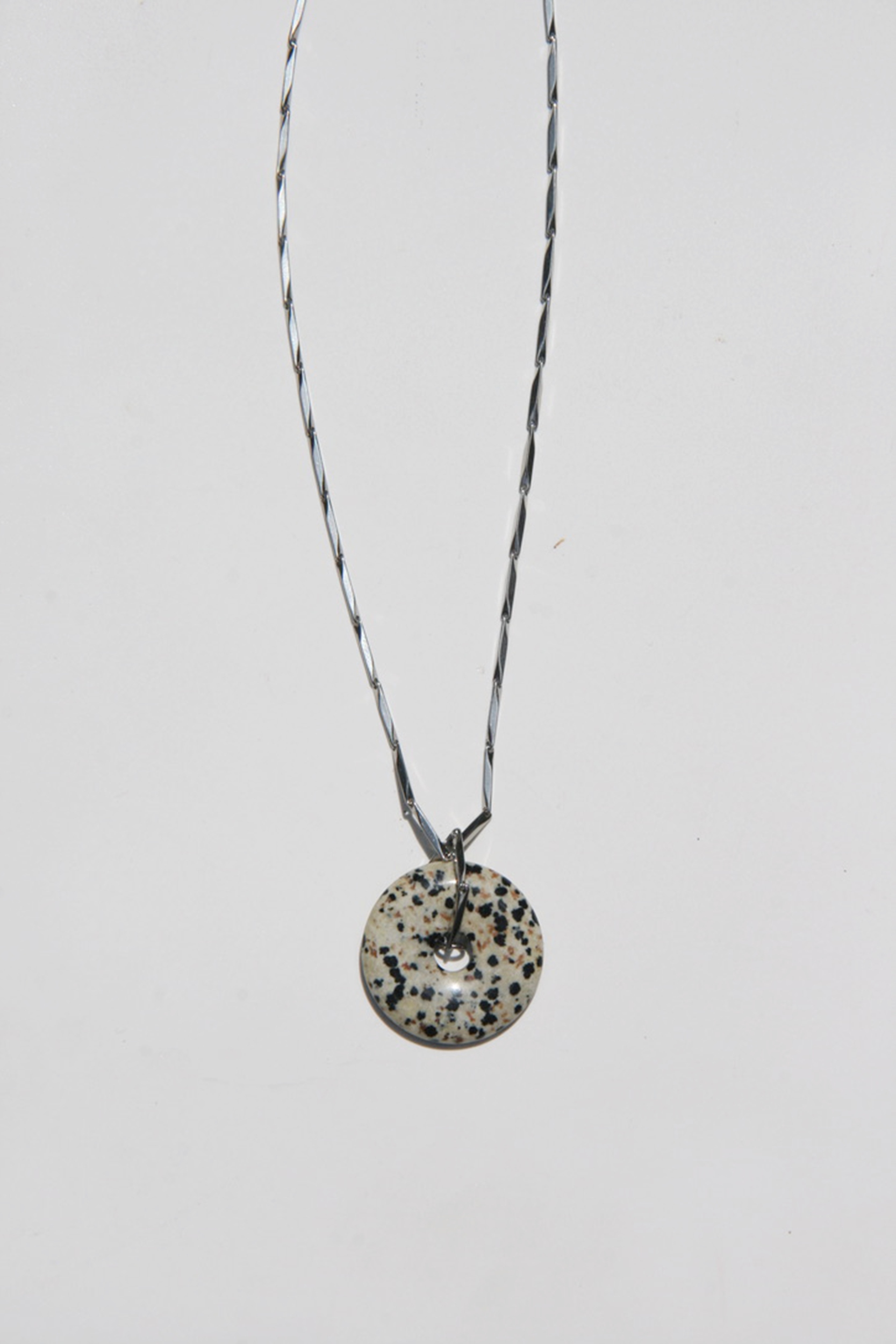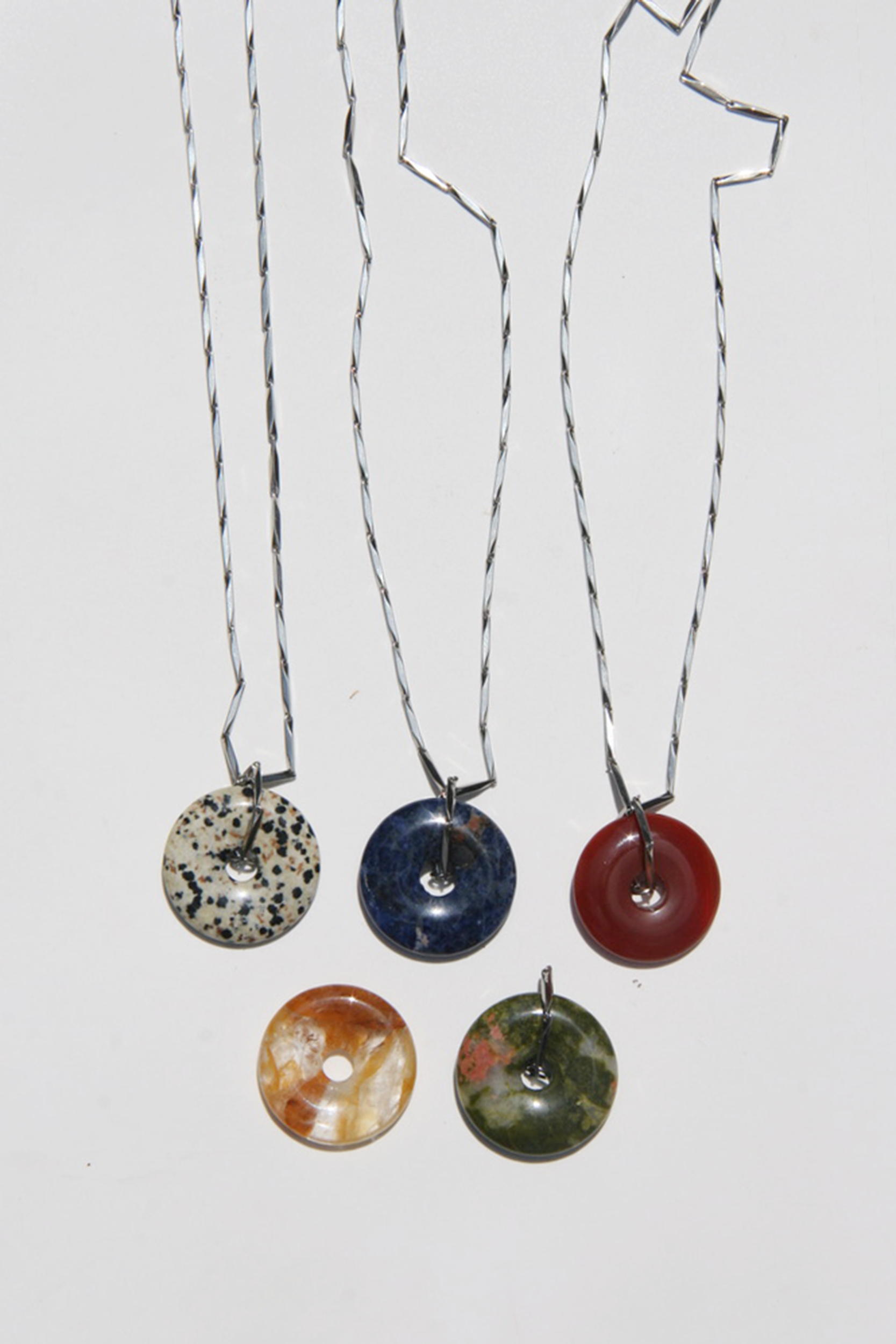 Featuring the refined La Homme chain on a smaller scale in polished rhodium, complemented by a gemstone donut pendant. Subtle and sleek.