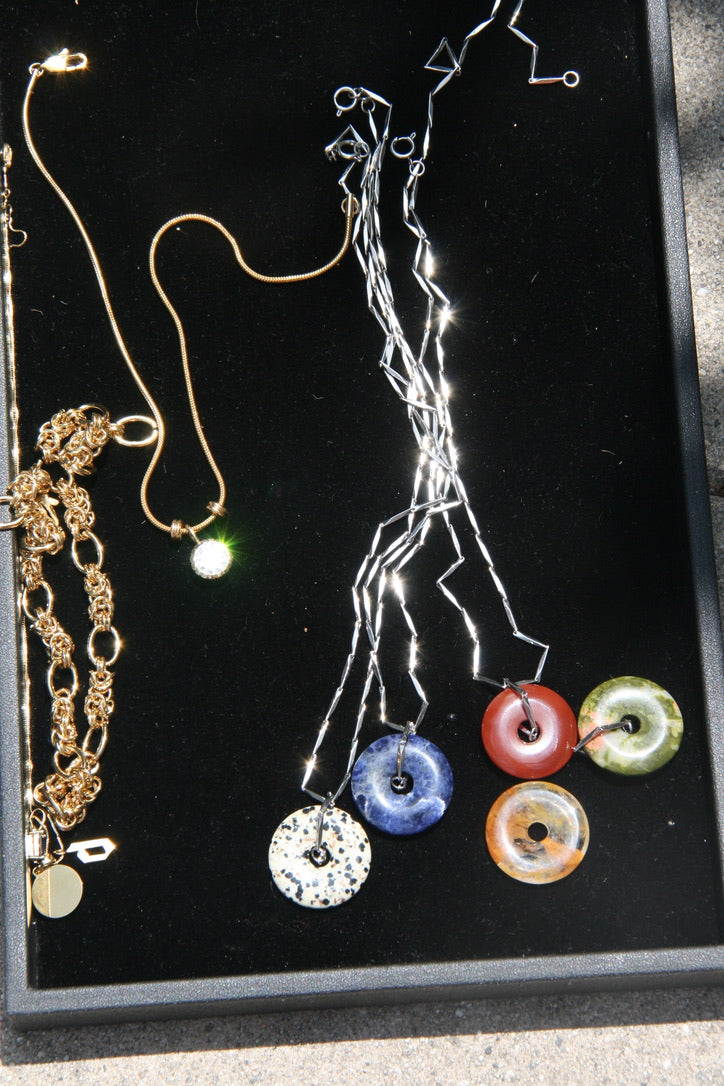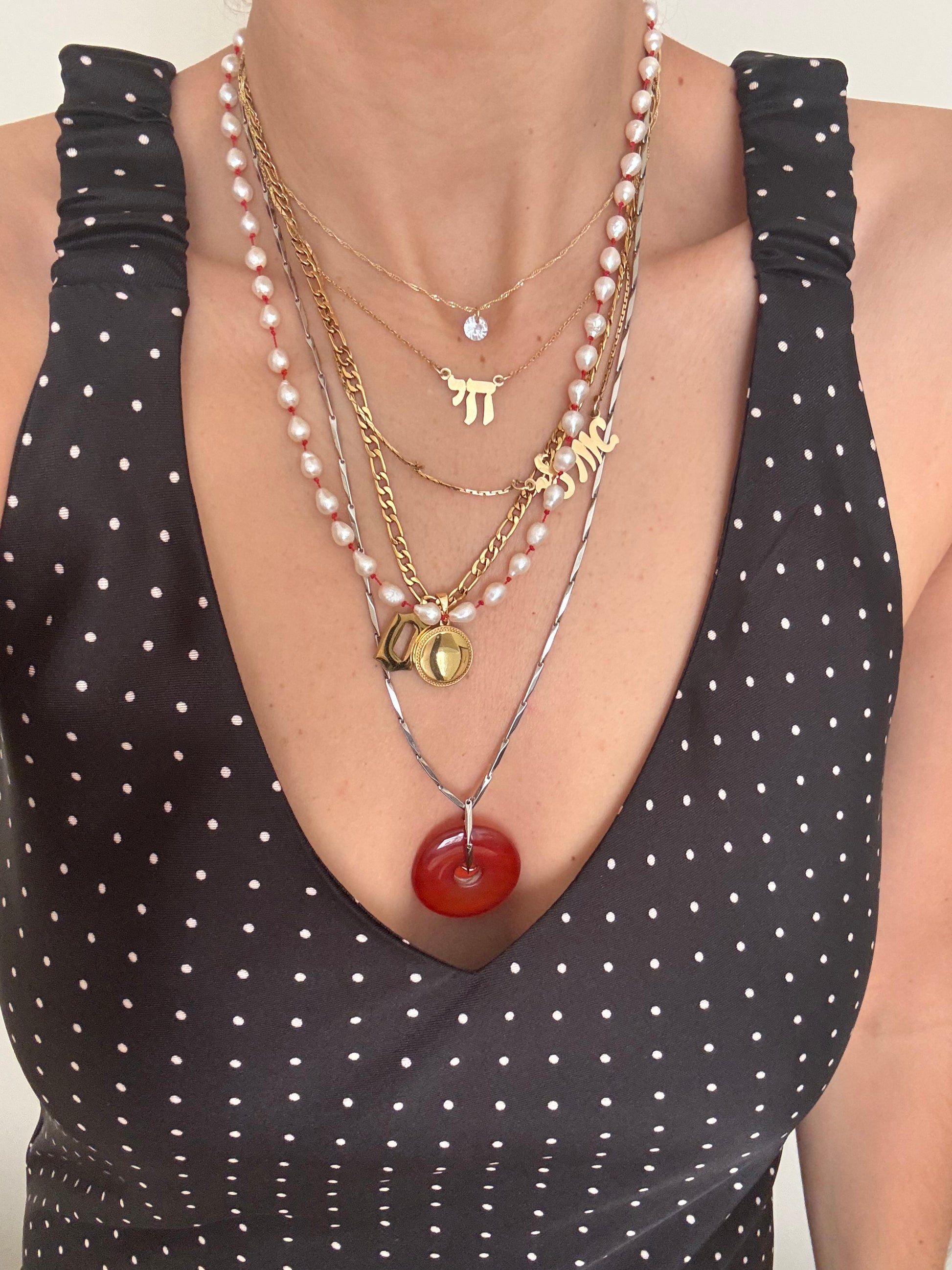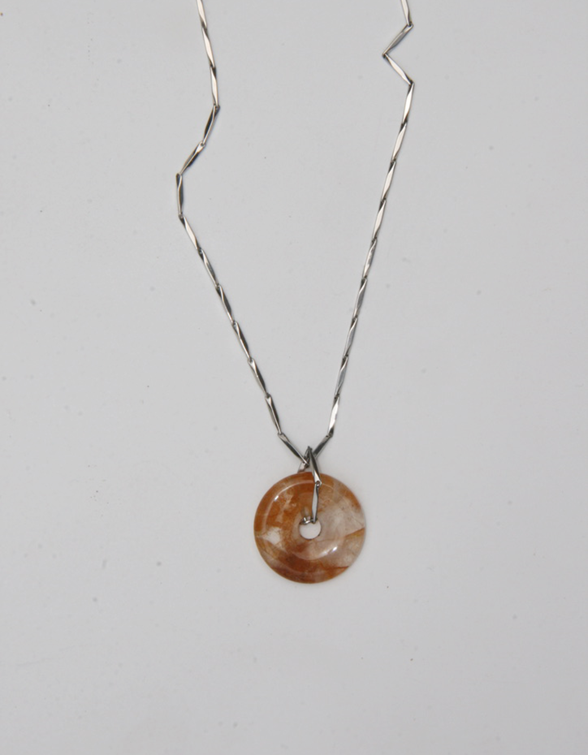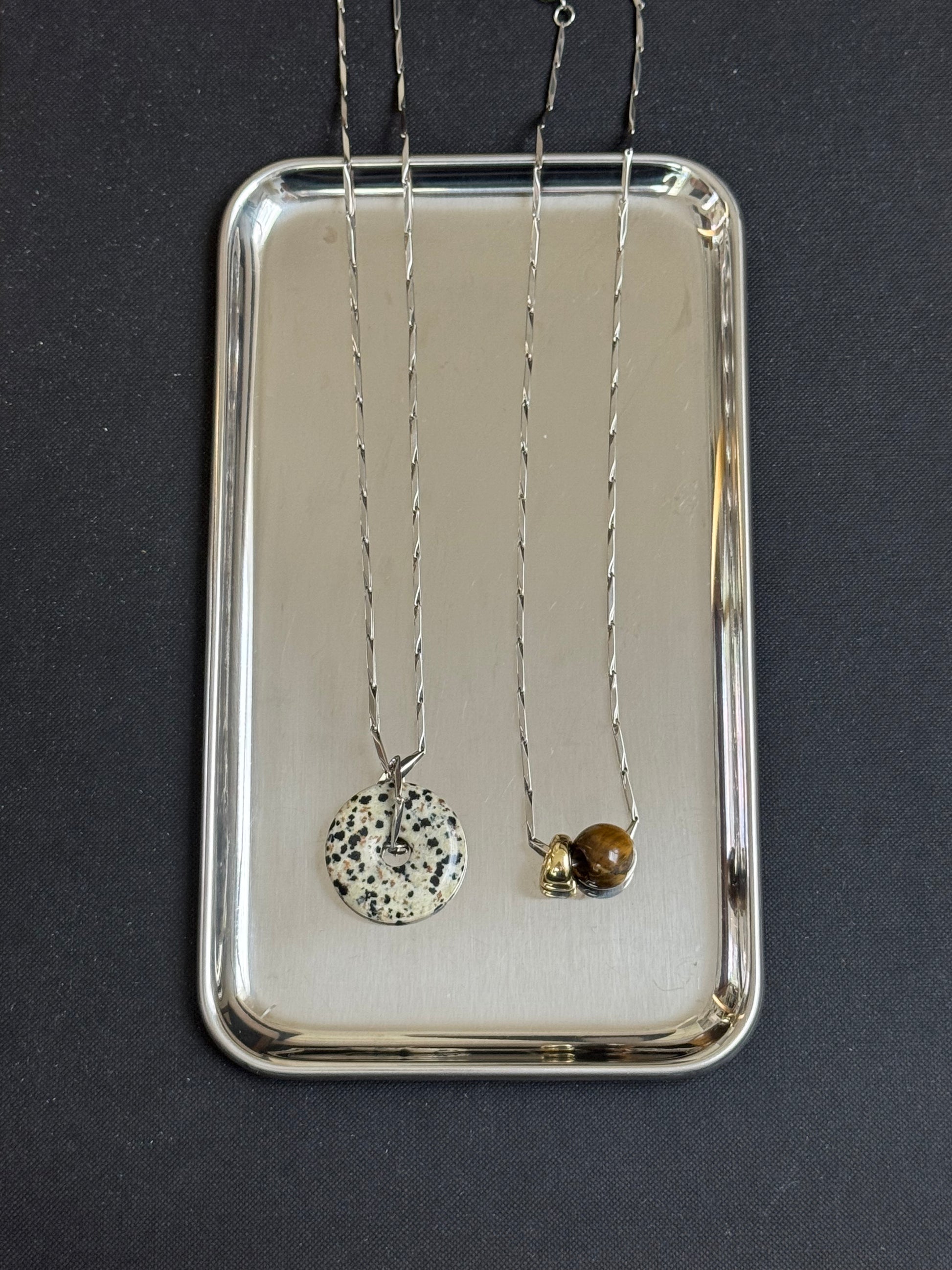Featuring the refined La Homme chain on a smaller scale in polished rhodium, complemented by a gemstone donut pendant. Subtle and sleek.
